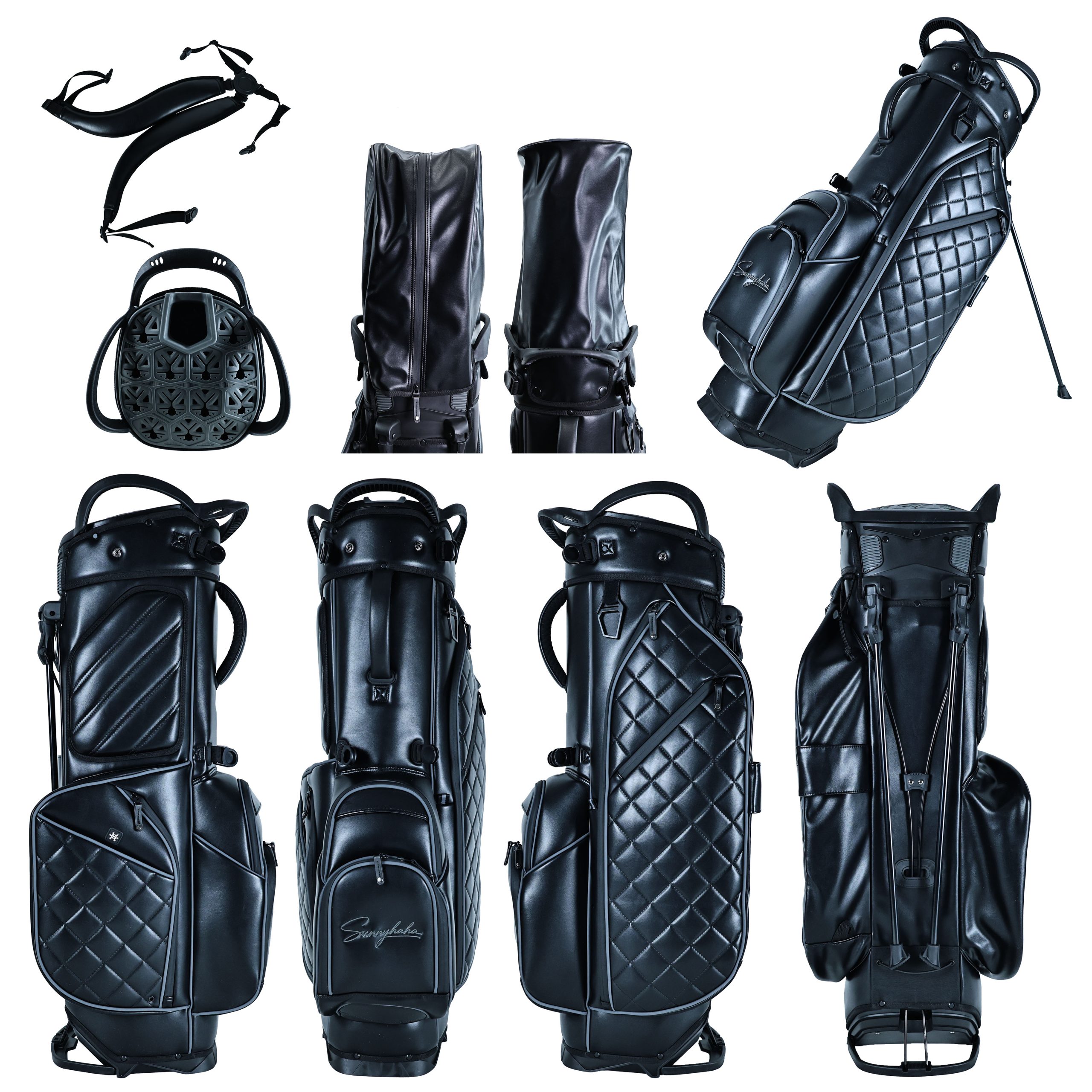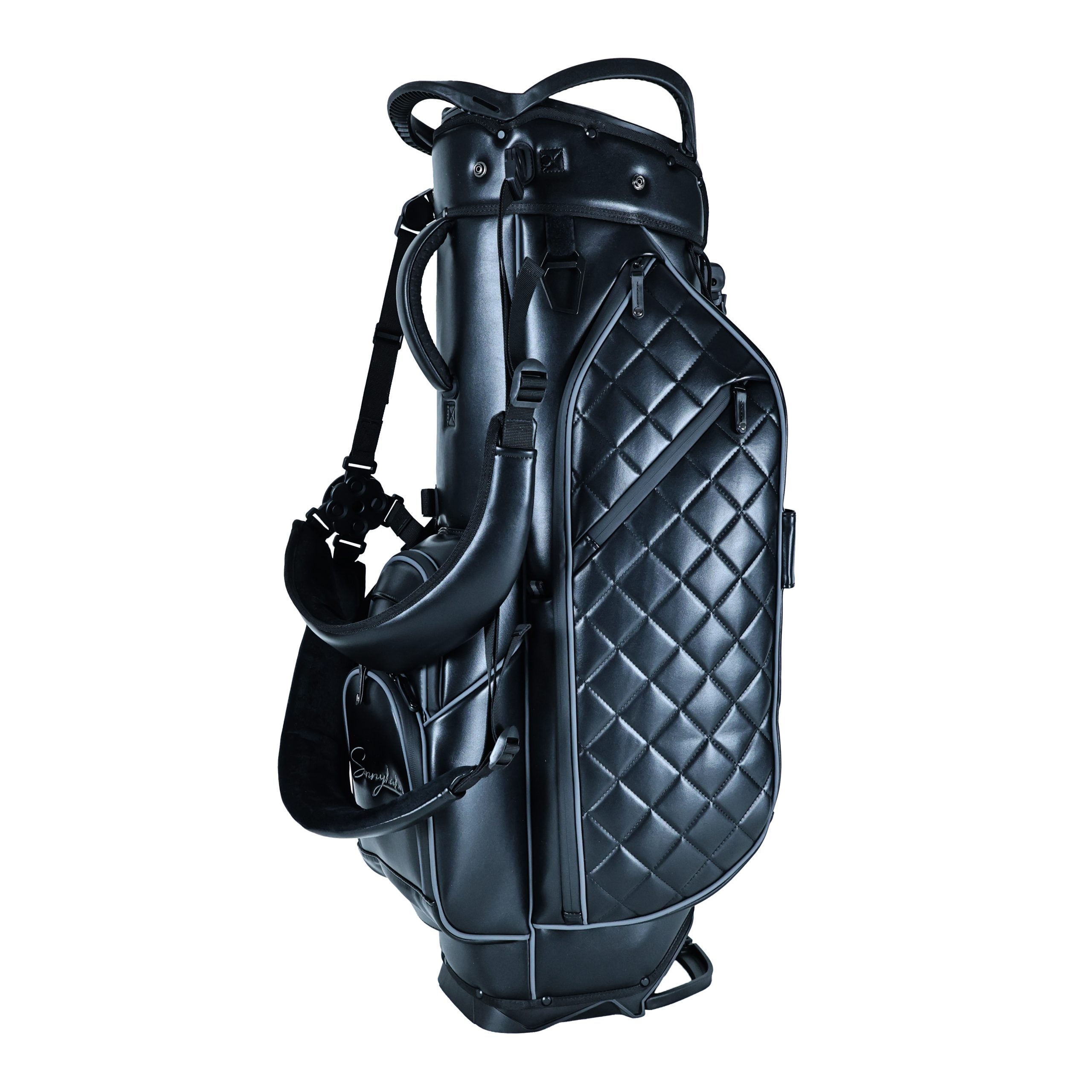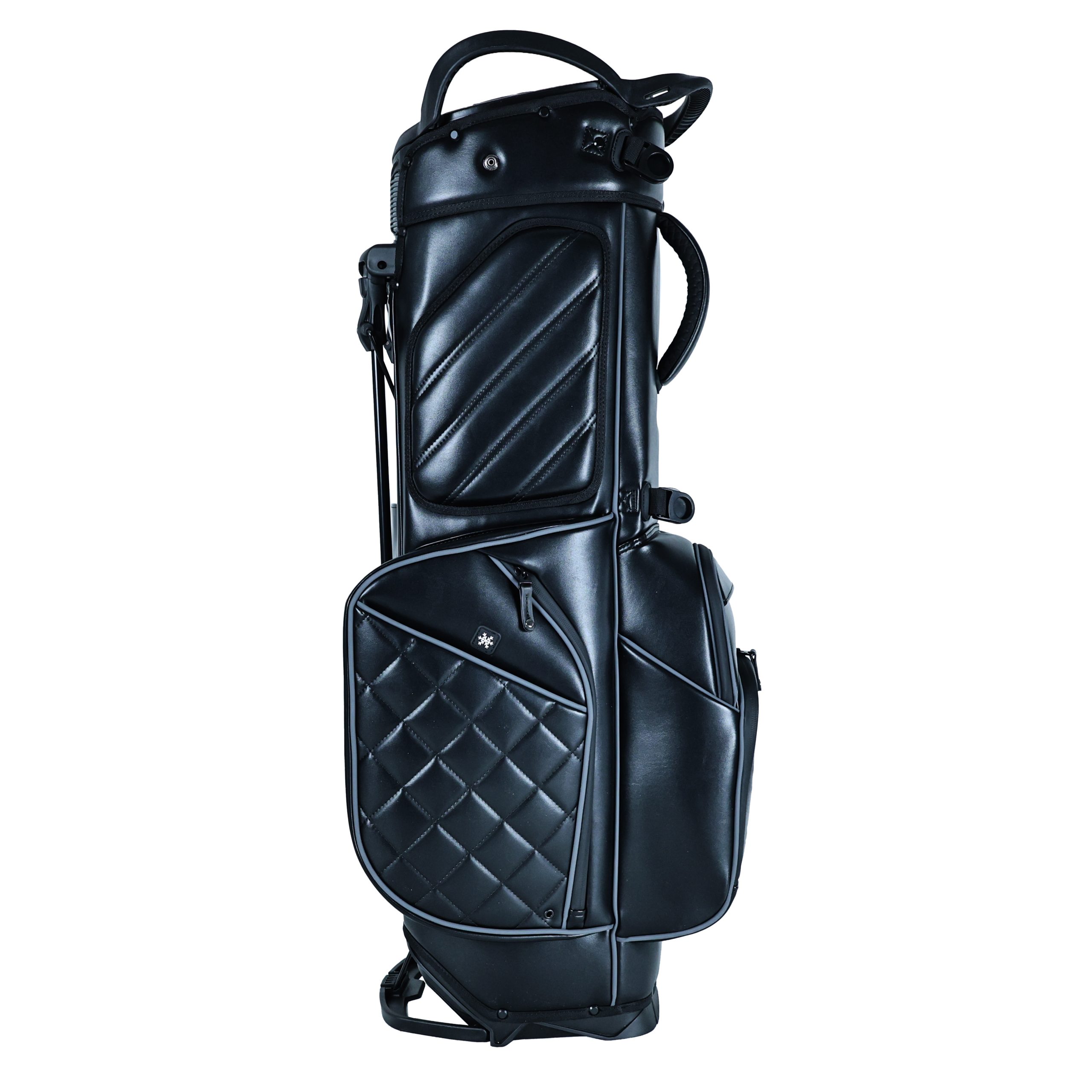 The sleek black leather finish offers a timeless, versatile look that appeals to a broad range of golfers. This classic color ensures strong marketability for any golf stand bag in retail or wholesale channels.