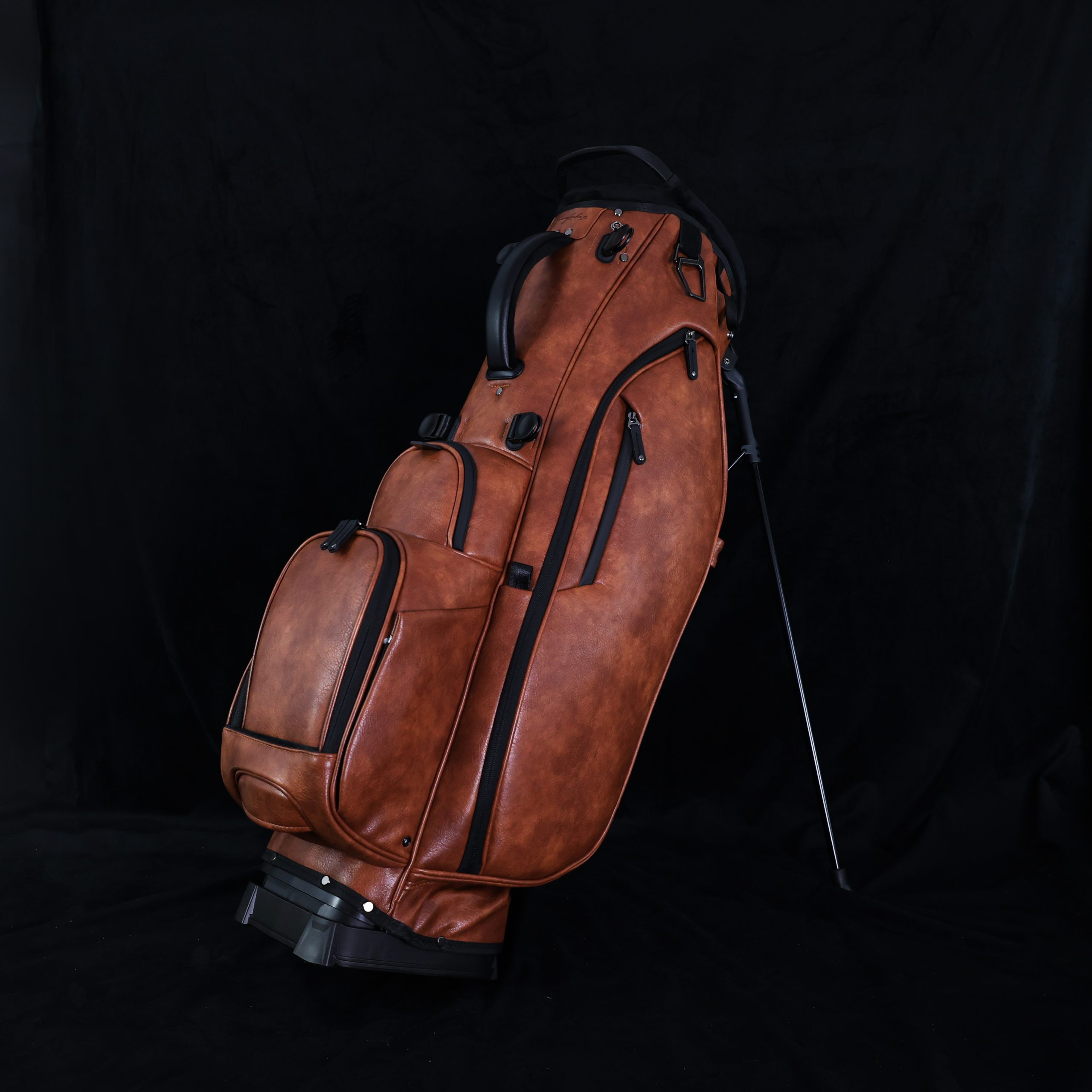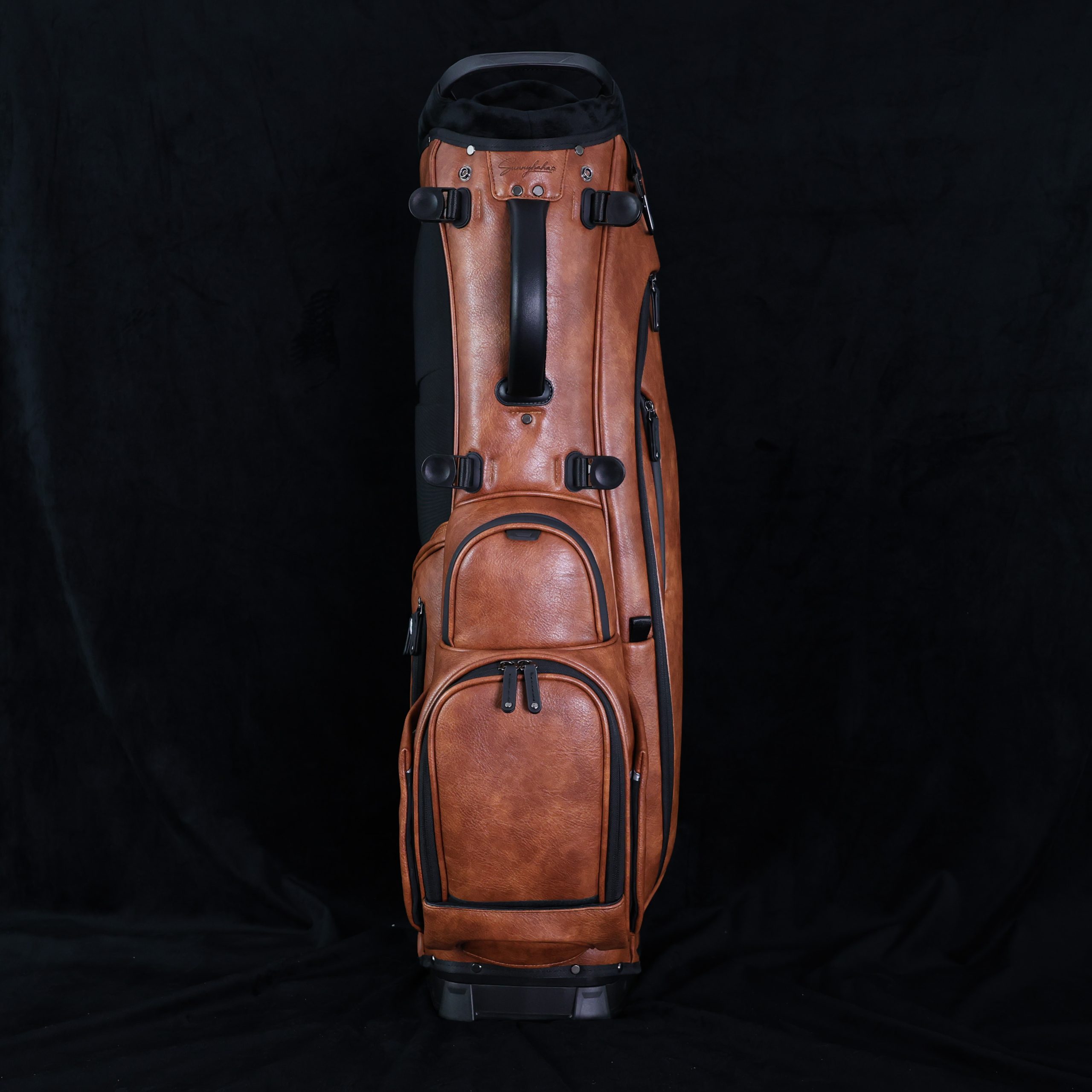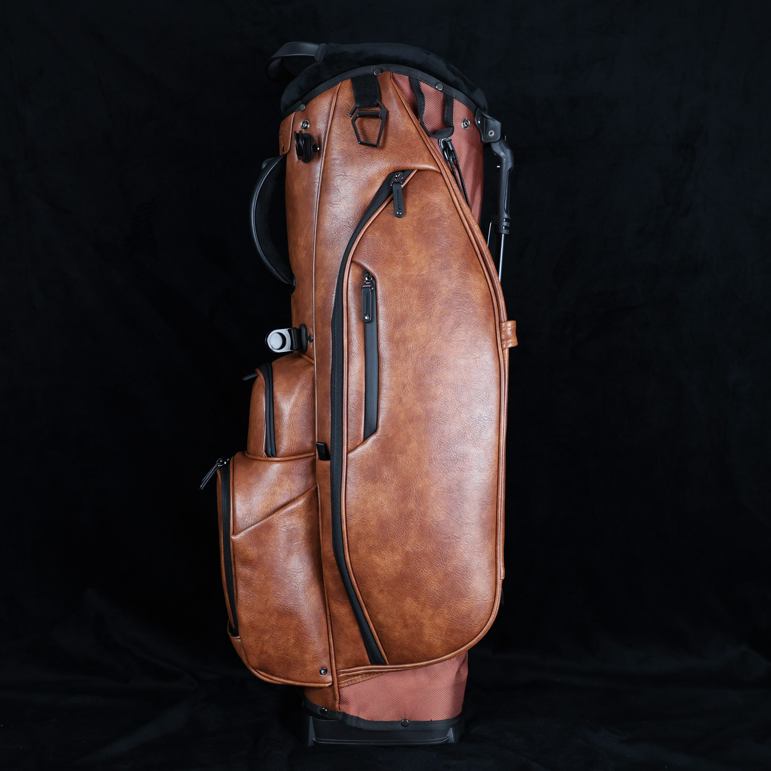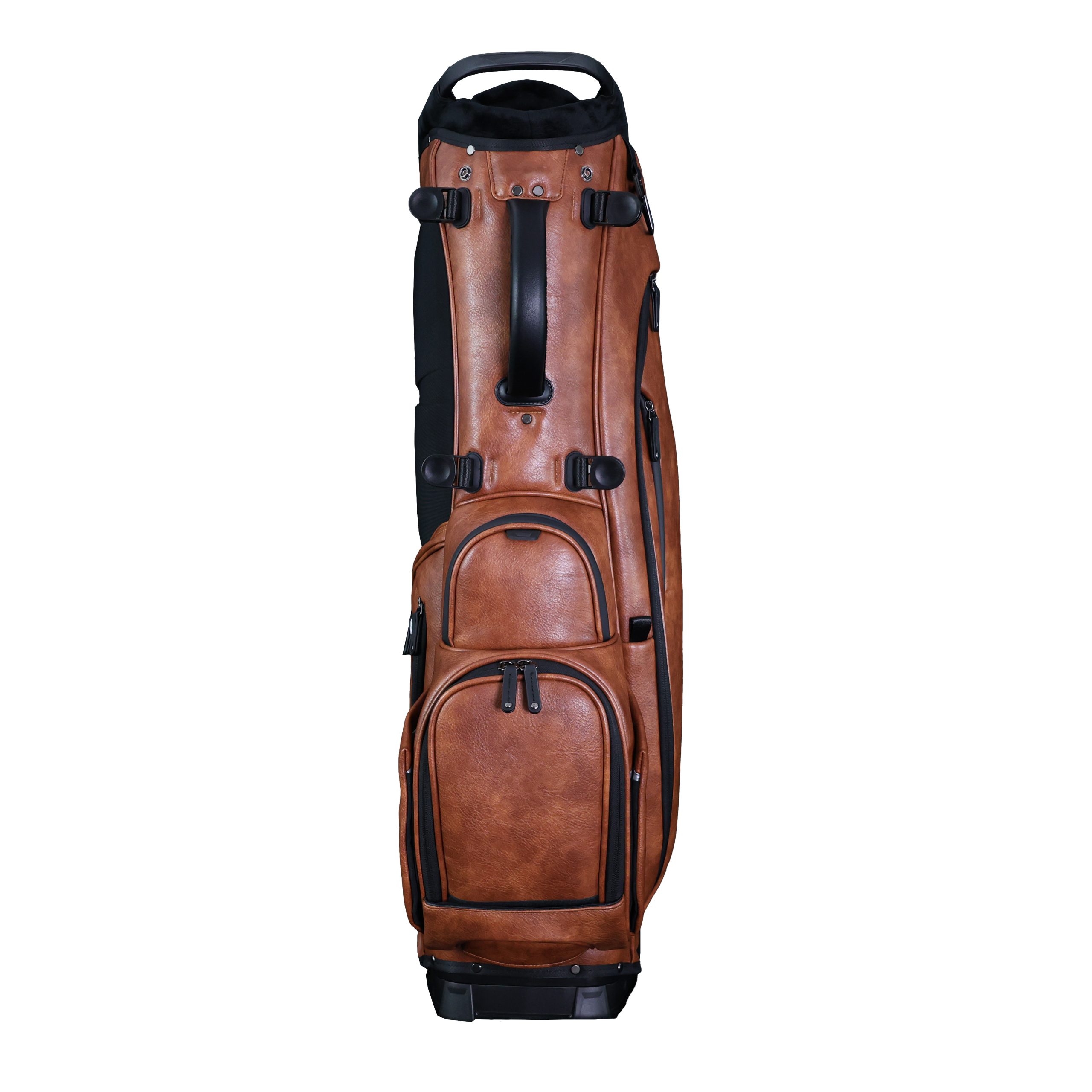 The rich brown leather finish offers a timeless, professional look that appeals to a broad range of golfers. This versatile color ensures strong marketability for any golf stand bag for sale in retail or wholesale channels.