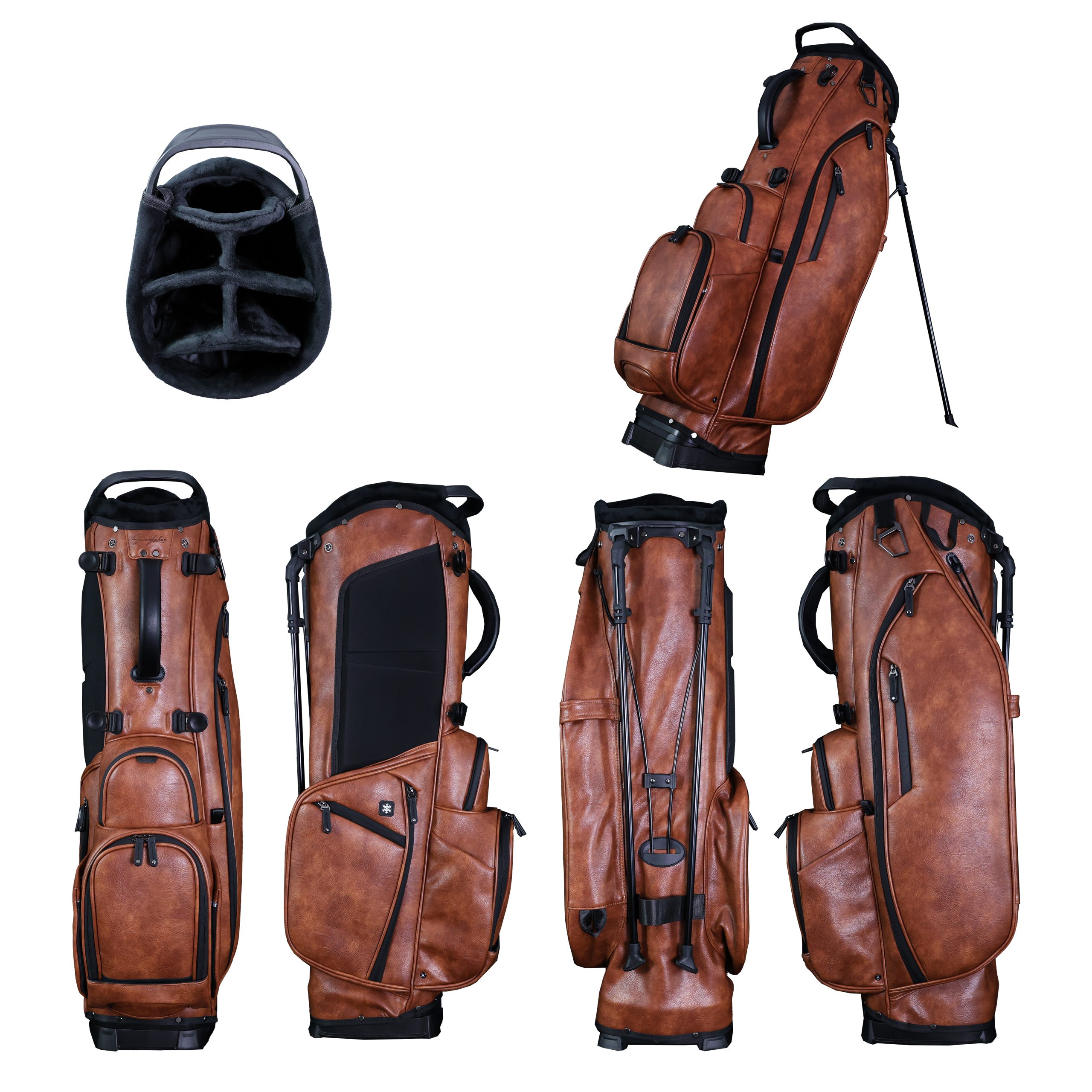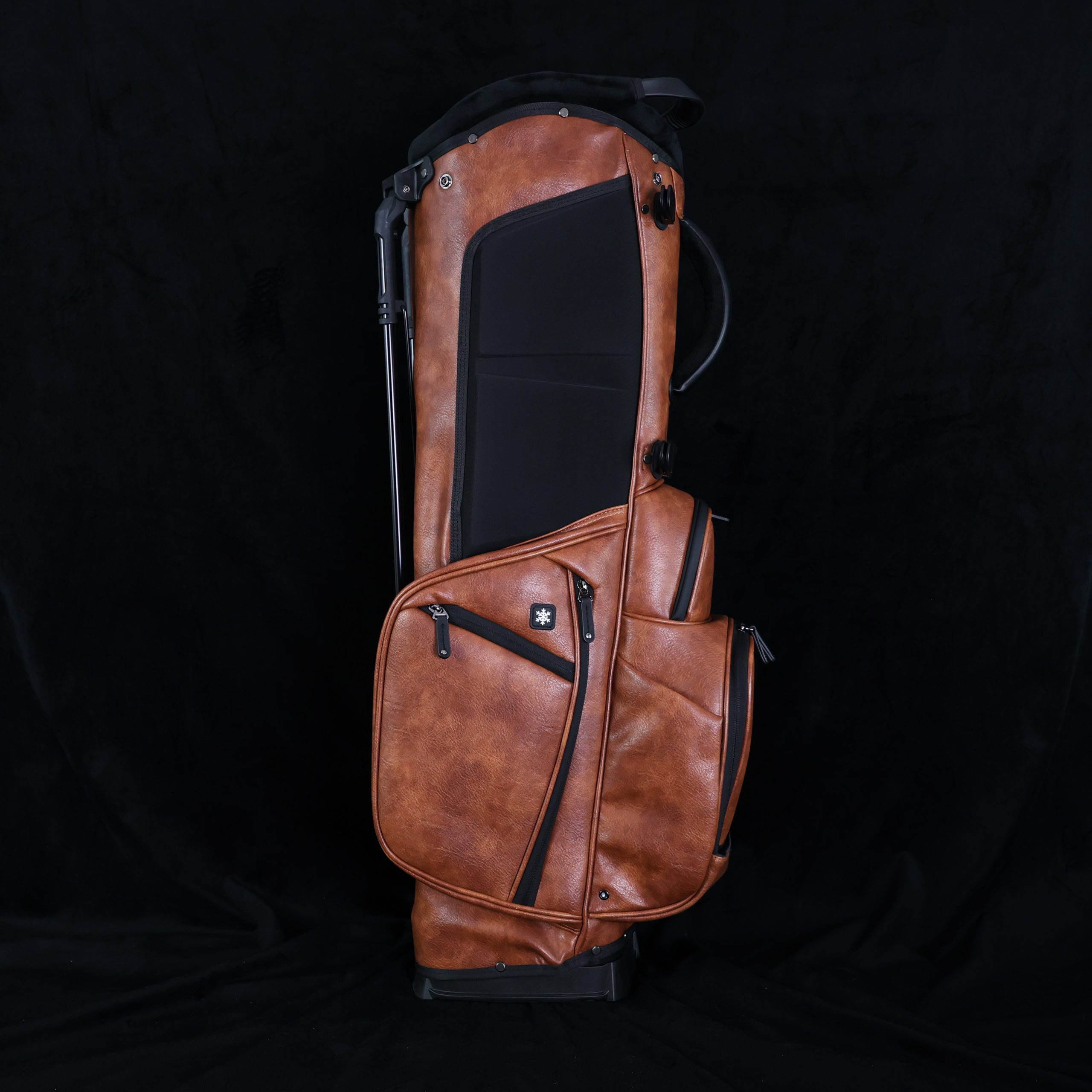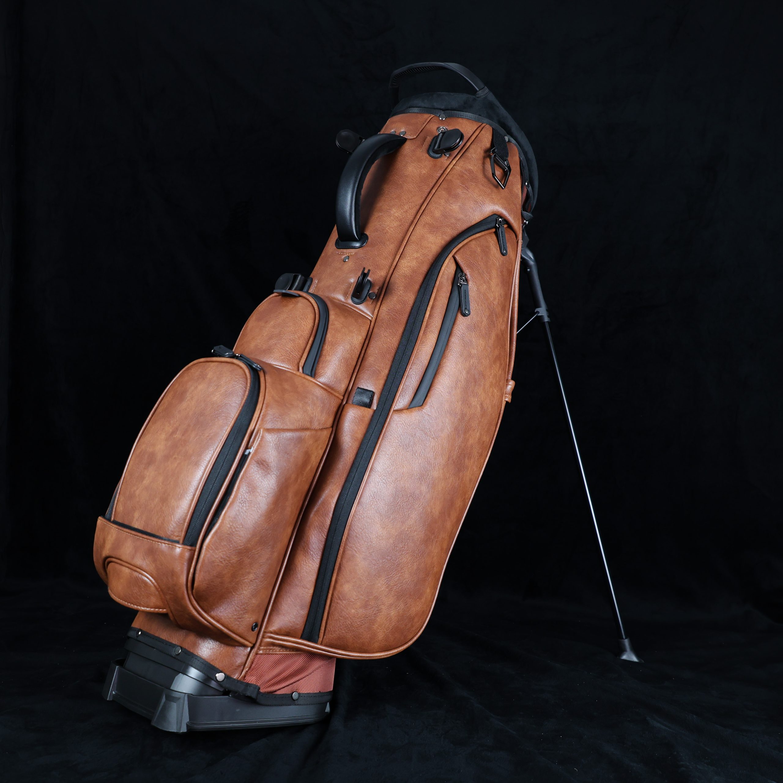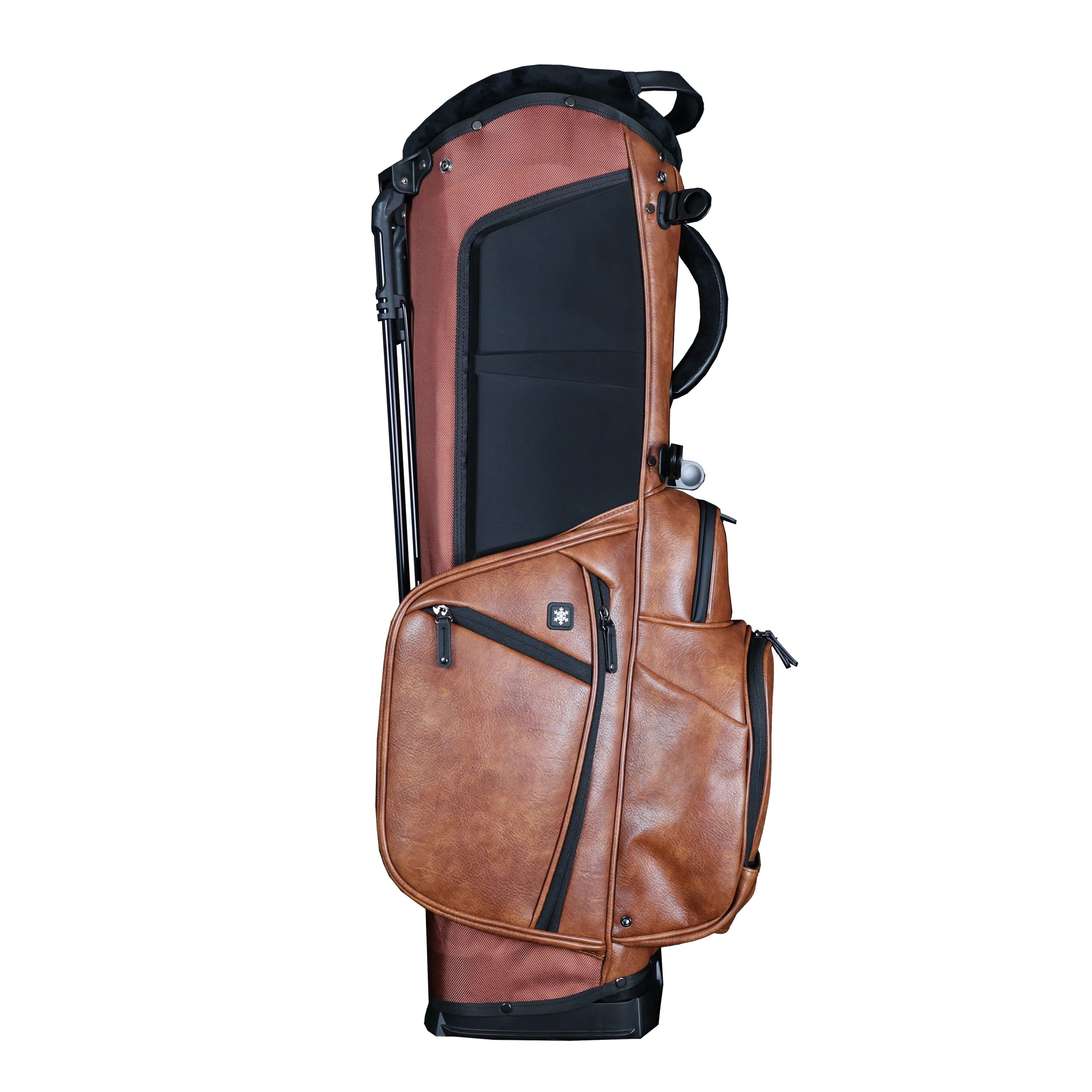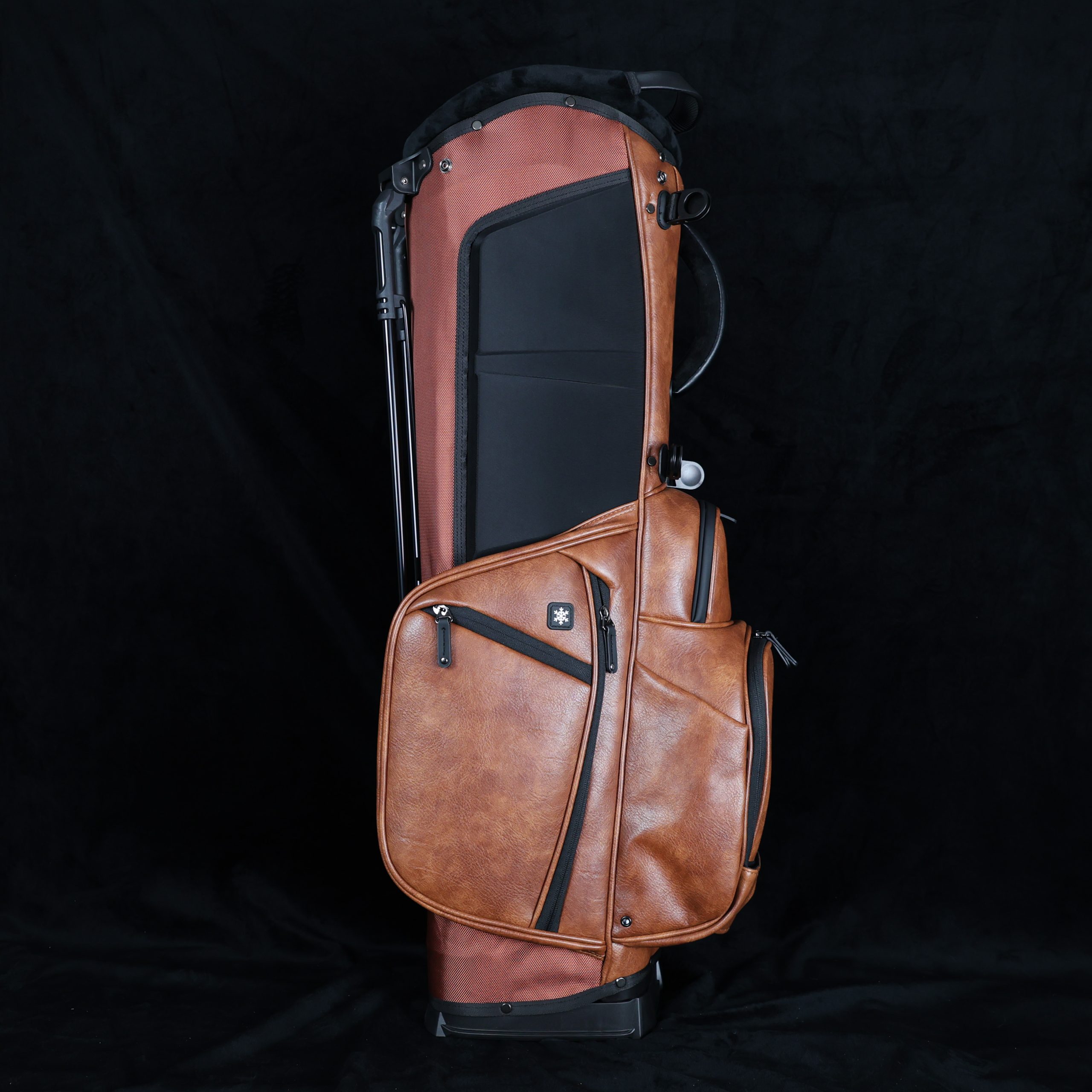 The rich brown leather finish offers a timeless, professional look that appeals to a broad range of golfers. This versatile color ensures strong marketability for any golf stand bag for sale in retail or wholesale channels.